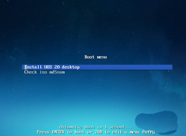 5、接著進入UOS的boot目錄,默認是【Install UOS 20 desktop】。