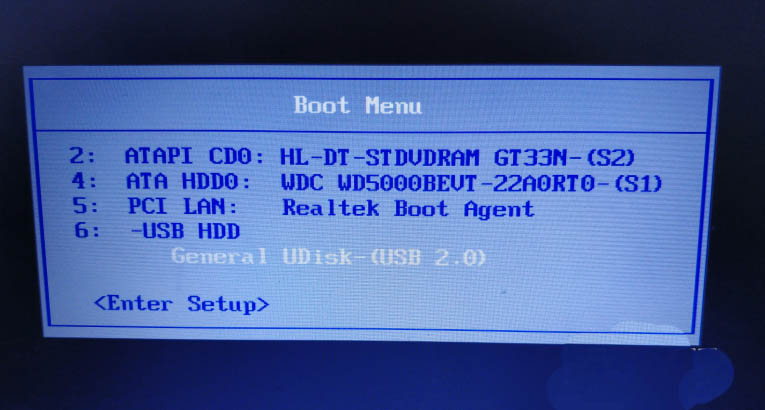 4、打開要安裝UOS系統的PC,選擇U盤啟動。【此處的電腦是敲擊F12進入Boot Menu的】。