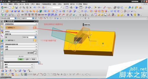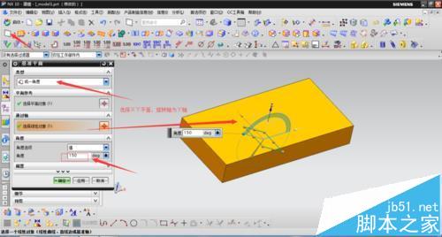 1、以在一個長方體中創建兩條傾斜槽為例,首先在原基準平面上創建一個長方體,然后我們要了解傾斜槽的角度,使用基準平面命令將原基準面旋轉一個相應的角度,具體操作如圖所示