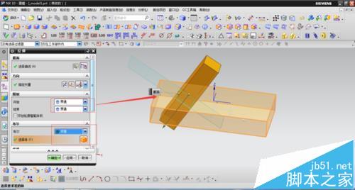 3、再進行拉伸,兩邊選擇貫通,如果是有錐度的,可以在拉伸中的拔模里面設置,相應的也要設置起始位置和終止位置點,布爾運算選擇求差。