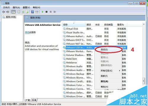 vm虛擬機(jī)下找不到USB設(shè)備的解決辦法,開啟VMUSBArbService服務(wù)項(xiàng)。必要是開啟為自動(dòng)。