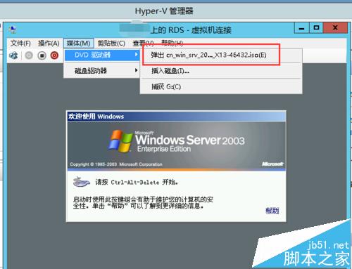 4、在菜單欄的操作下面,選擇 插入集成服務(wù)安裝盤(pán)