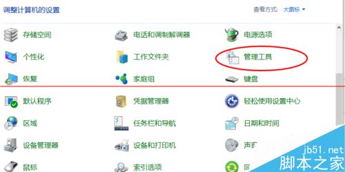 2、找到管理工具,打開