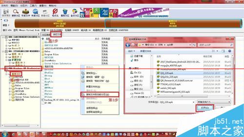 2、左邊的VD0:Windows XP Profession就是打開(kāi)的虛擬機(jī)硬盤,如圖所示,第一步可以自己選擇想復(fù)制到的分區(qū),第三步過(guò)后找到自己想要復(fù)制的文件,點(diǎn)擊打開(kāi)