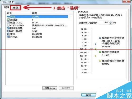 2、點擊“編輯虛擬機設置”,會彈出個新的窗口中,點擊“選項”。