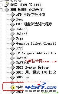 2、選擇“查看”/“顯示隱藏的設備”,在“非即插即用驅動程序”中選擇“npkcrypt”,卸載之,可選重新啟動