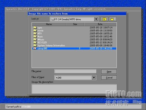 小提示:你可以把你備份的鏡像文件刻到光盤上,以節省磁盤空間,恢復時在上面的框里找到鏡像文件的位置,就可以進行恢復了。