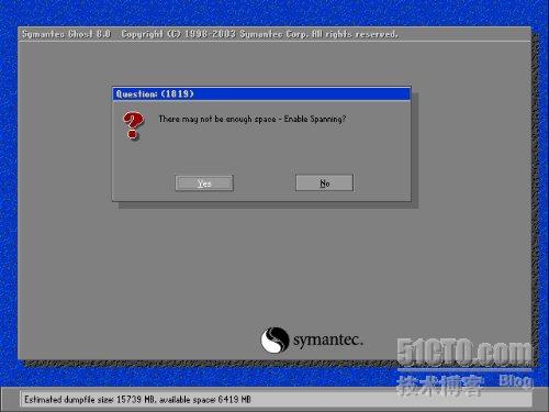 (2)空間不夠的提示:是否將鏡像文件存儲在多個分區上