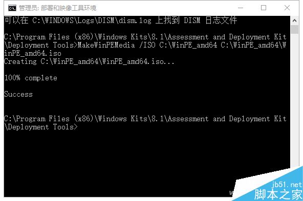 在后臺制作映像文件,等待執行完畢后,在C:/WinPE_amd64文件夾下生成了名為“WinPE_amd64.iso”的WinPE映像了。