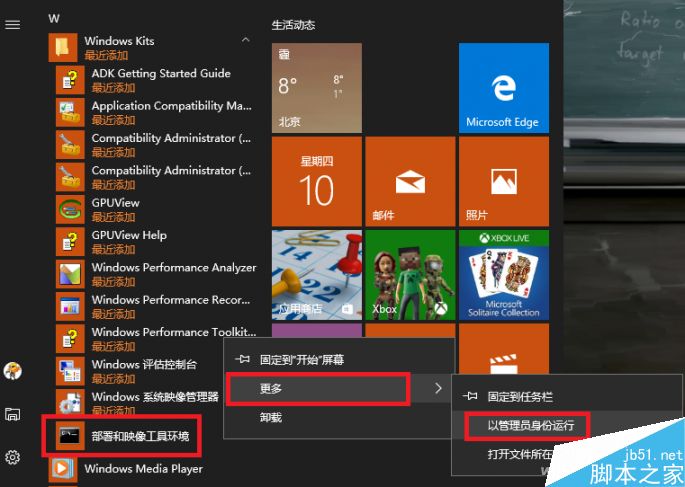 現在點擊開始菜單,在“Windows Kits”程序組下,找到“部署和映像工具環境”,以管理員身份運行,隨后出現命名提示符界面,開始制作流程吧!因為涉及較多命令操作,建議大家在利用電腦微信端,用瀏覽器打開頁面將命令完全復制下來,避免代碼執行出錯。