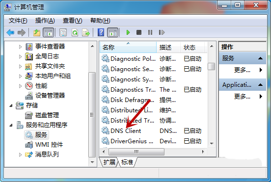 4、在服務(wù)中,找到【DNS Client】,確保是啟動(dòng)的,沒有需要啟動(dòng)。