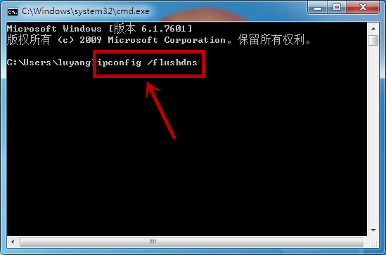 5、進(jìn)入命令提示符,輸入“ipconfig /flusbdns”回車。