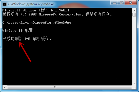 7、等出現(xiàn)【已成功刷新DNS解析緩存】,退出即可解決問題。