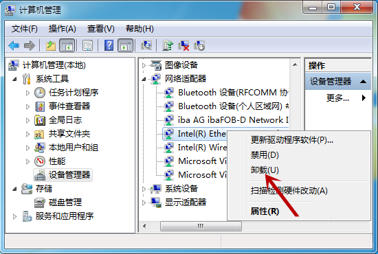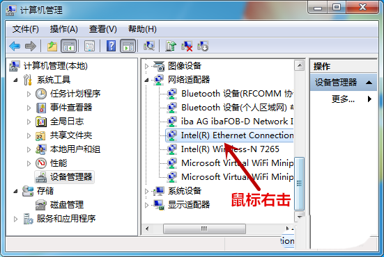 2、接著,在右側(cè)鼠標(biāo)右擊“網(wǎng)絡(luò)適配器”下的適配器。