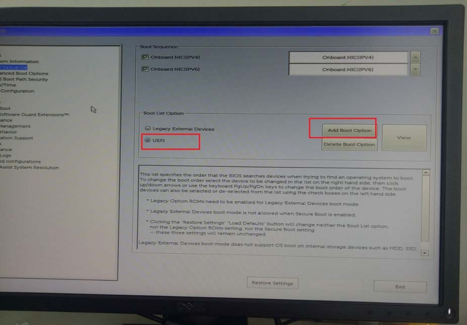 3、這個時候我們先將下面的模式勾選UEFI模式,然后點擊add boot option,