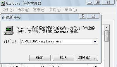 在打開中輸入:C:WINDOWSexplorer.exe 單擊確定即可!