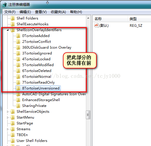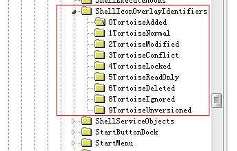 對于我自己機器, 看了下注冊表,ShellIconOverlayIdentifiers的目錄樹如下: