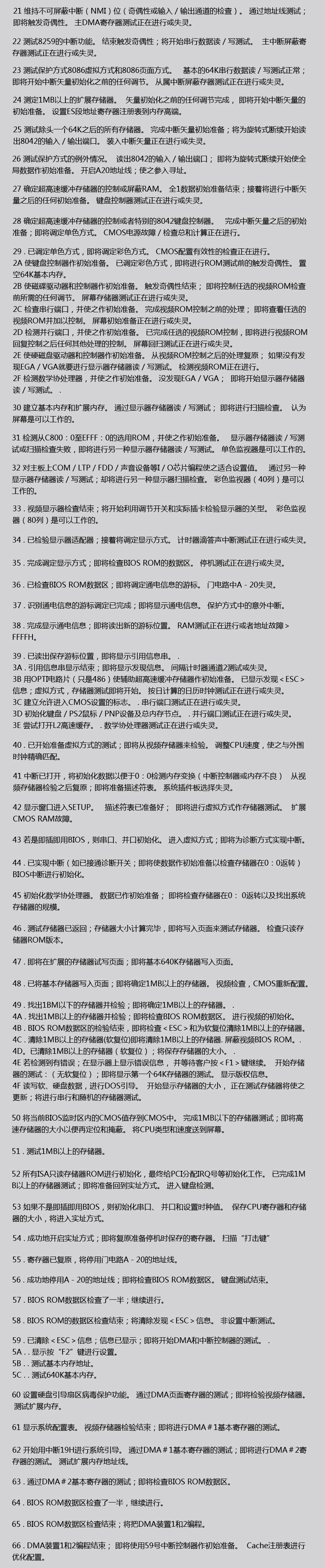 4) 如果在最小系統(tǒng)下沒發(fā)現(xiàn)問題,再利用逐步添加法,逐一添加其他設(shè)備,觀察診斷卡顯示代碼的情況,找出故障件。
