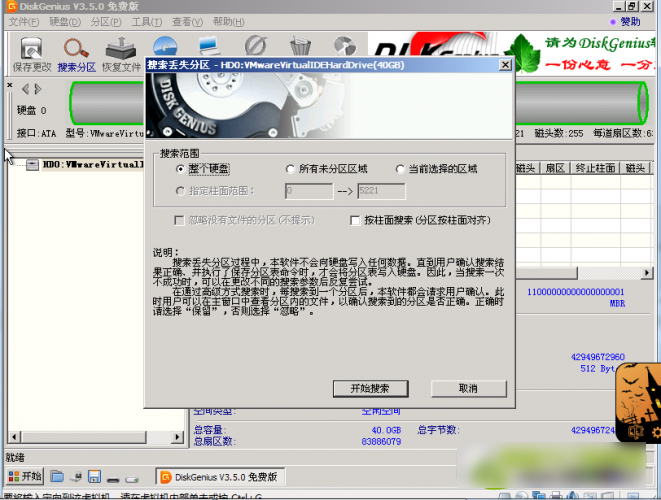 4.選擇整個(gè)硬盤 點(diǎn)擊開始搜索