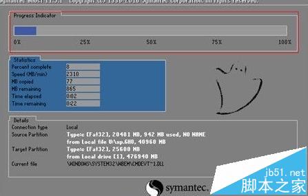 2、沒辦法只有按下復位鍵重啟電腦,因電腦之前裝有一鍵GHOST備份,于是果斷還原試一下,但是還原之后還是如此。電腦開機還是在“正在啟動 windows”界面卡住。