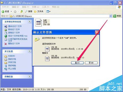 如果在C:/Windows/System32/Config文件下,沒(méi)有這個(gè)SAM文件,復(fù)制會(huì)順利進(jìn)行,如果這個(gè)SAM文件,只是損壞,但還存在,復(fù)制時(shí),就會(huì)彈出提示框,詢問(wèn)是否覆蓋文件,按是即可,如果在系統(tǒng)下無(wú)法覆蓋, 被系統(tǒng)阻止,則到安全模式下去覆蓋試試。