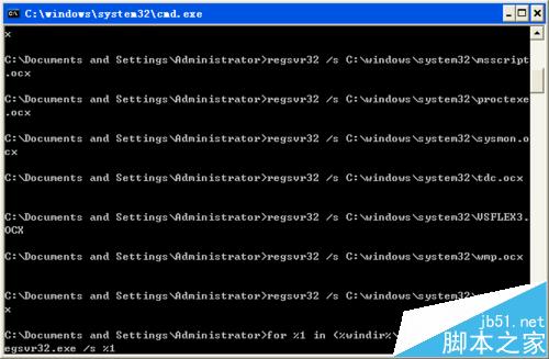 4、都還不行的話,只有用運(yùn)行工具進(jìn)行掃描檢查掃描了,他會(huì)主動(dòng)找到錯(cuò)誤項(xiàng),掃描完成后重啟就基本上完成了。運(yùn)行---輸入cmd---輸入for %1 in (%windir%/system32/*.ocx) do regsvr32 /s %1 等這屏完了再輸入for %1 in (%windir%/system32/*.dll) do regsvr32.exe /s %1,這時(shí)候系統(tǒng)可能要掃描幾分鐘,不過(guò)要看下你的系統(tǒng)文件有多少了。
