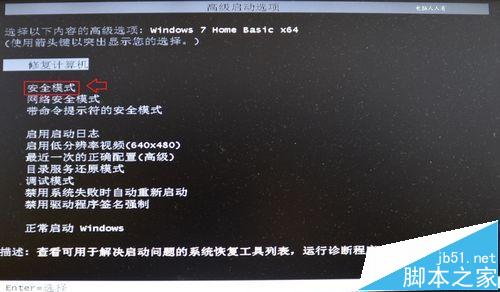 方法二:方法一不行,再開機按F8鍵,進入安全模式,這里沒有顯示,說明問題不很嚴重,再重啟電腦,繼續按F8鍵:此時可以選擇使用【“最后一次正確的配置”啟動Windows】選項進入系統。