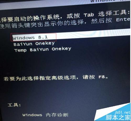 1、我們先重啟電腦,然后一直不停的點擊鍵盤上方向鍵中的上下兩個按鍵,然后選擇原來的系統敲回車,這里以前的系統是win8.1