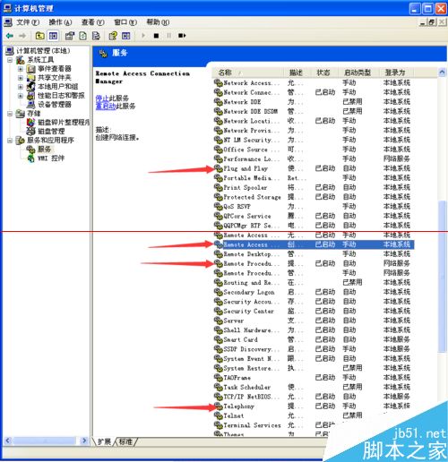 3、驗(yàn)證必要的服務(wù)是否已經(jīng)啟動(dòng),通過(guò)“控制面板->管理工具->服務(wù)”查看以下幾個(gè)服務(wù)是否已經(jīng)啟動(dòng):remote procedure call(RPC)network connectionsplug and playcom+ event systemremote access connection manager telephony共六項(xiàng)服務(wù)。這里要特別注意的是當(dāng)remote access connection manager服務(wù)沒(méi)有啟動(dòng)的話(huà),在建立網(wǎng)絡(luò)連接的時(shí)候會(huì)出現(xiàn)提示。