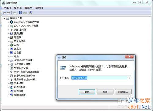 6、在運行中輸入:devmgmt.msc 回車(Enter)打開設備管理器。