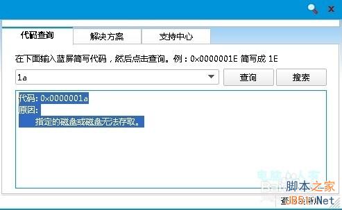 12、下載一個藍屏代碼查詢器,輸入藍屏簡碼,軟件會給出參考緣由(見下圖)