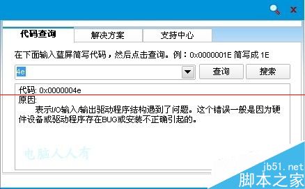 9、下載一個藍屏代碼查詢器,輸入藍屏簡碼,軟件會給出參考緣由。