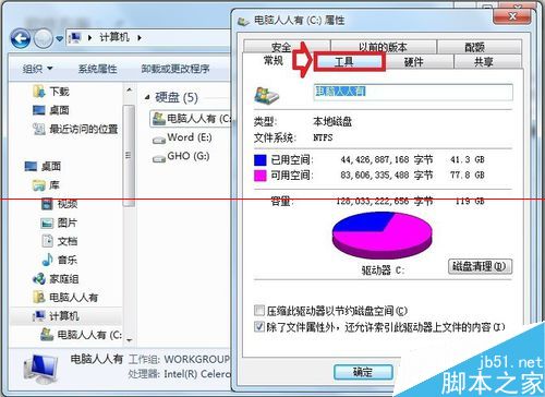 7、磁盤自檢:右鍵磁盤分區→屬性→工具