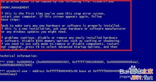 4、其實,這張截圖還有一個更重要的訊息是:顯示了出錯的ntoskrnl.exe文件名。