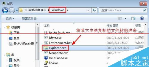 8、有時候可能的原因是自己電腦的explorer.exe文件丟失,這時候我們需要到其他電腦下載explorer.exe然后將文件放到U盤中然后粘貼到電腦c:/windows文件夾,重新加載!