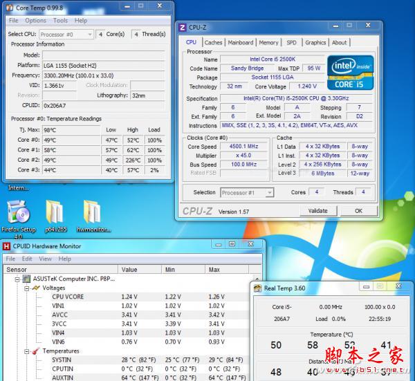 之前的讀者來信中一個例子就是這樣,他選用了Intel的酷睿i5-2500k和Z68主板,之前一直是在CPU電壓1.25V左右將處理器超頻至4.5GHz使用,這個頻率下處理器的性能超過了目前所有i5處理器的默認性能(圖4)。不過近期問題來了,在這個超頻狀態下用戶在進行游戲時候經常藍屏,有些時候在Windows待機狀態下也有死機現象。用戶選擇稍微調高CPU電壓以求穩定卻沒有任何幫助,這是怎么一回事呢?