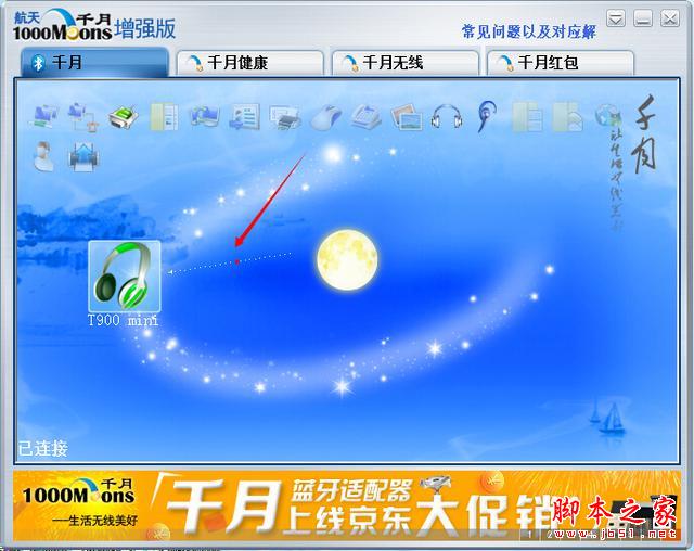 當(dāng)然,它不可能直接和你的藍(lán)牙音箱配對(duì)連接,還需要下載一個(gè)千月的藍(lán)牙軟件,安裝在電腦上就可以了,然后打開搜索,這個(gè)軟件有一個(gè)好處就是,不管你有幾個(gè)藍(lán)牙設(shè)備直接點(diǎn)中間這都可以搜索到,并且可以一起連接,也就是說,如果你有藍(lán)牙音箱,藍(lán)牙鍵盤和鼠標(biāo),都可以用這個(gè)適配器同時(shí)連接。