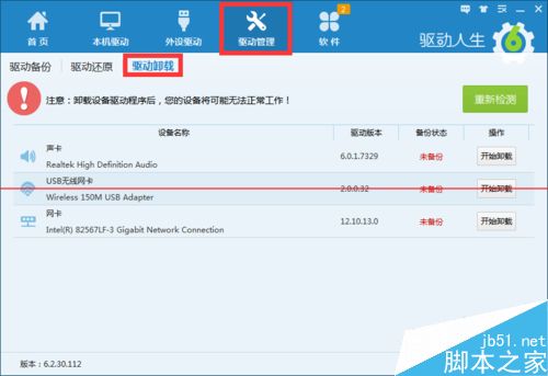 10、打開“驅動人生”程序,切換到“驅動管理”-“驅動卸載”選項卡,將對應的顯卡或其它驅動給卸載掉。