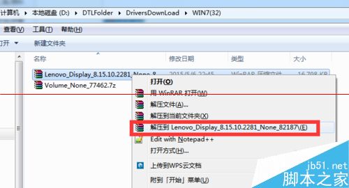 3、從打開的“驅動程序”文件夾目錄中,解壓對應的驅動程序,可以通過右擊對應的驅動壓縮包,選擇“解壓到”項來實現。