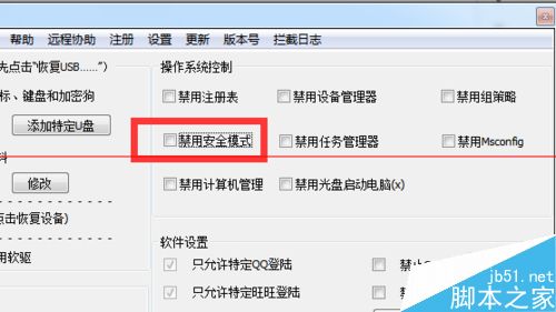 9、安裝并運行此工具,在彈出的程序主界面中勾選“禁用安全模式”項,以實現禁用電腦開機顯示“安全模式”啟動菜單界面。