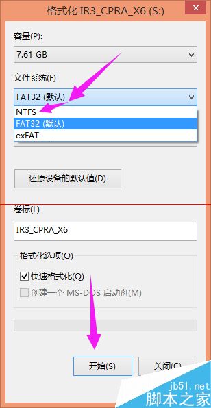 2、文件系統默認為FAT32,將其更改為NTFS,然后點擊格式化。