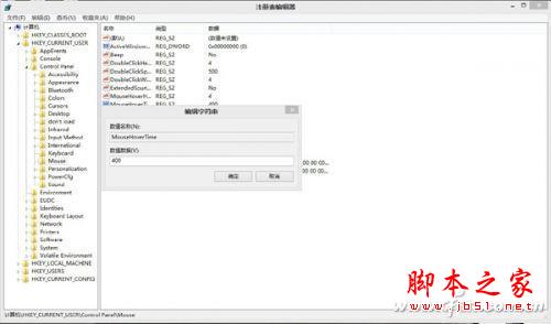 在“運行”中輸入“regedit”打開注冊表編輯器,定位到“HKEY_CURRENT_USER/Control Panel/Mouse”,在右邊找到“MouseHoverTime”并雙擊打開,在“數(shù)值數(shù)據(jù)”中填入“100”后重啟后,就能夠消除當鼠標移動到任務欄某項目上時,顯示縮略圖的延遲。