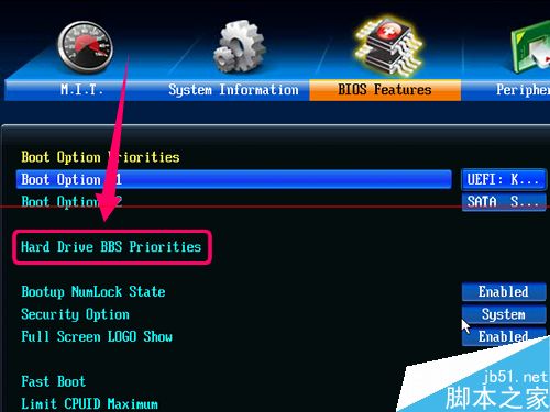 3、找到設置引導設備順序的那一項,點擊下面的Hard Drive BBS Priorities