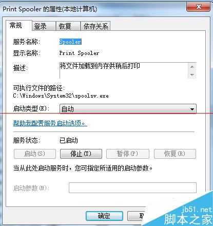 7、進入屬性對話框,點擊將 print spooler服務啟動,啟動類型修改為自動