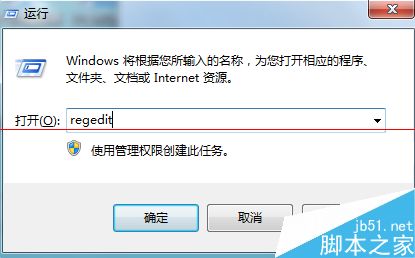 2、在彈出運行對話框輸入【regedit】命令,點擊確定,打開注冊表編輯器