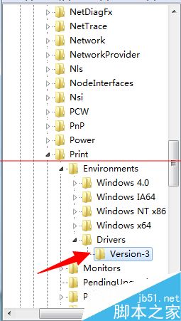 3、進入注冊表定位【HKEY_LOCAL_MACHINE/SYSTEM/Control/print/Environments/Drivers】