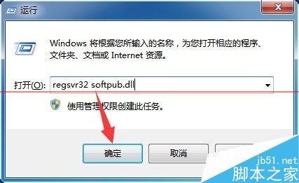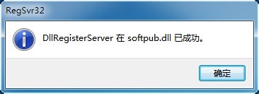 2、例如在“運行”窗口中輸入“regsvr32 softpub.dll”,并按回車即可完成對“softpub.dll”組件的注冊操作。利用同樣的方法,對其它兩個組件進行注冊。