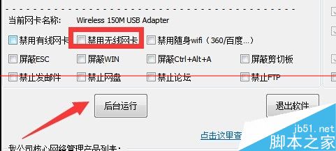 6、運行“USB管理軟件”,在打開的程序主界面中勾選“禁用無線網卡”,從而實現對無線網卡的禁用操作。