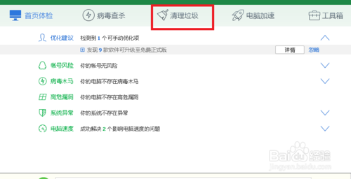 要想系統(tǒng)用著快,穩(wěn)定,必須刪除無用的垃圾和不必要的軟件,我們用管家的“清理垃圾”功能來操作,不建議手工清垃圾,除非你對所有系統(tǒng)文件了如指掌。