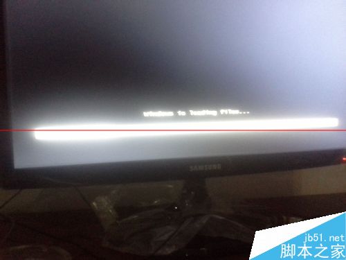 6、可是當我從系統盤啟動時,出現如下畫面,windows loading file 進度條走到頭就變黑屏了,什么畫面就沒有,系統又自動重新啟動,一直這樣死循環。